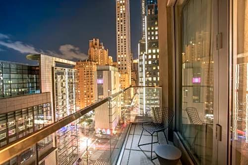 This suite has a private terrace with a view and a king bed. Some suites offer views of Columbus Circle and Central Park.